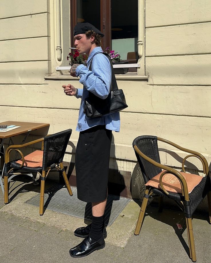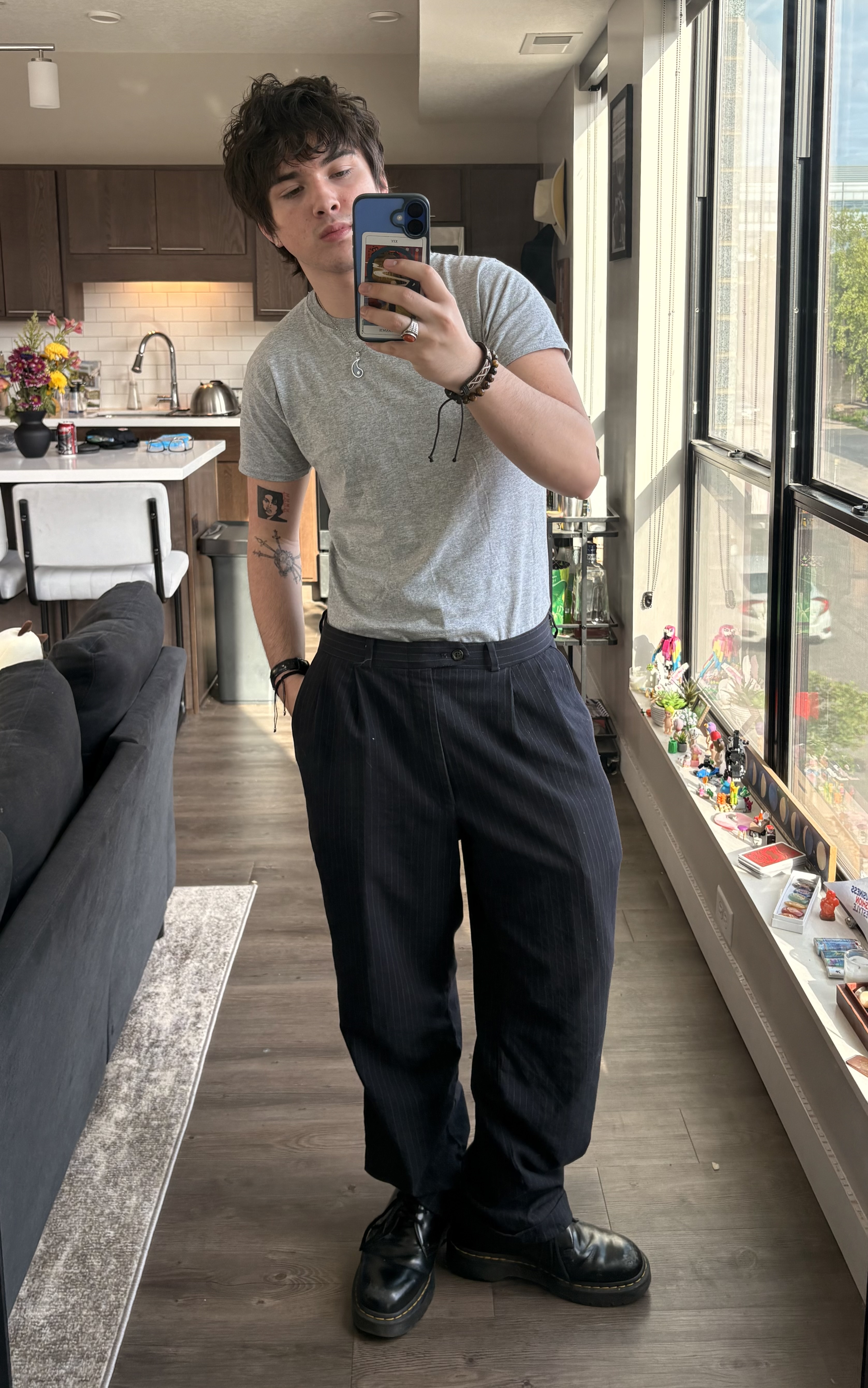 Picking the best dress shoe should be based on your outfit. Whether it’s black, brown, or cherry red, the easiest rule to follow is making sure it complements the rest of what you’re wearing. Doc Martens are a great choice — they can be styled with almost anything. Lately, I’ve noticed a rise in pairing these traditionally formal shoes with more casual pieces, which I’ve actually loved seeing. Whether they’re worn with a chic pair of sweats or athletic shorts, the contrast creates a really cool, effortless vibe.