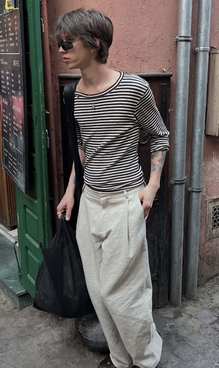 This summer, style is all about simplicity with intention. Think plain T-shirts, lightweight button-ups, and textured polos paired with tailored trousers or jeans — even if it means sweating a little for the look. Since heavy layering isn’t practical, accessories like hats and jewelry help personalize a basic outfit. Tattoos can also add a bold, stylish edge if that’s your thing. Ultimately, it’s about finding what feels good on your body and makes you feel like your most confident self.